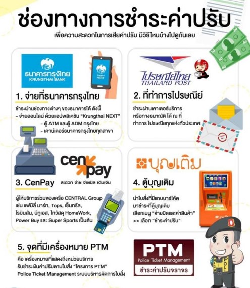 การให้ชำระค่าปรับผ่าน ระบบค่าปรับจราจร PTM และ ชำระผ่าน Mobile Banking เพื่อความสะดวกรวดเร็ว